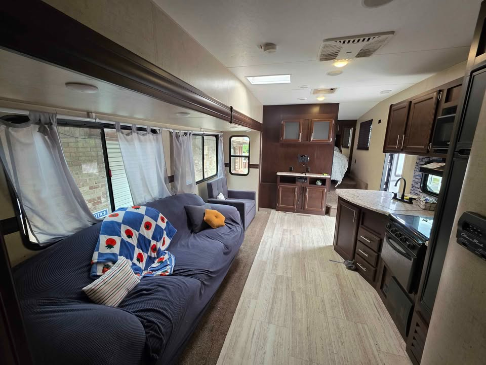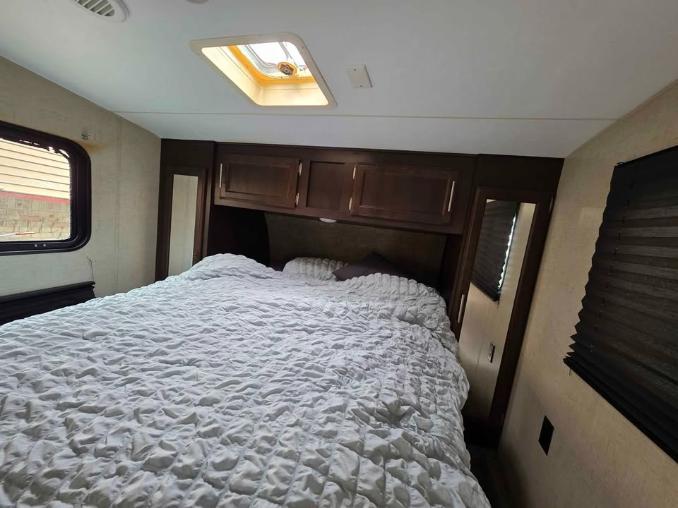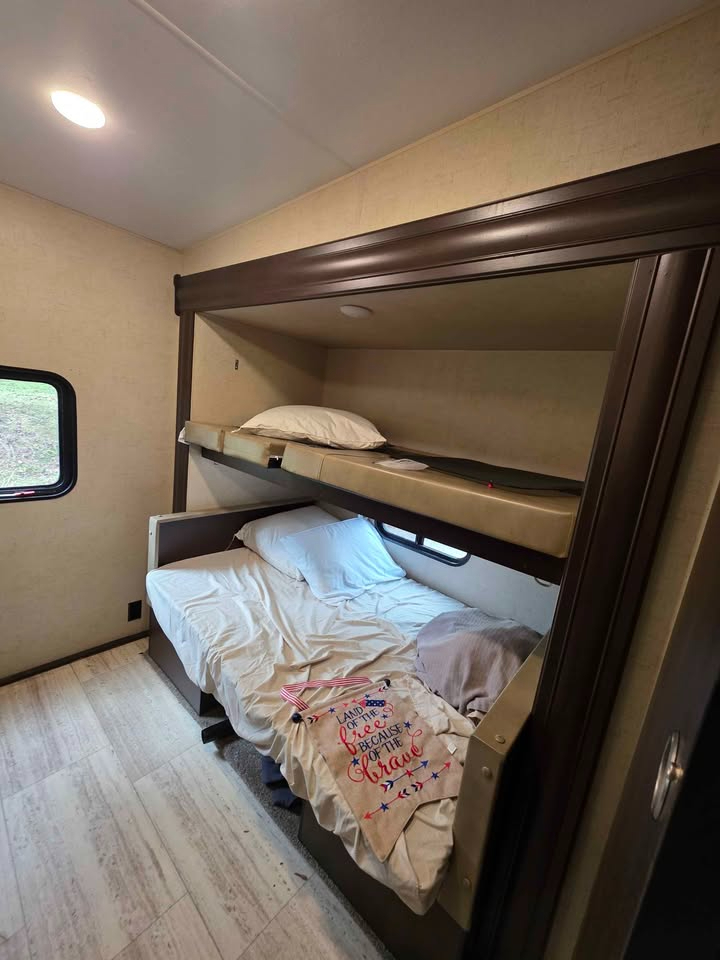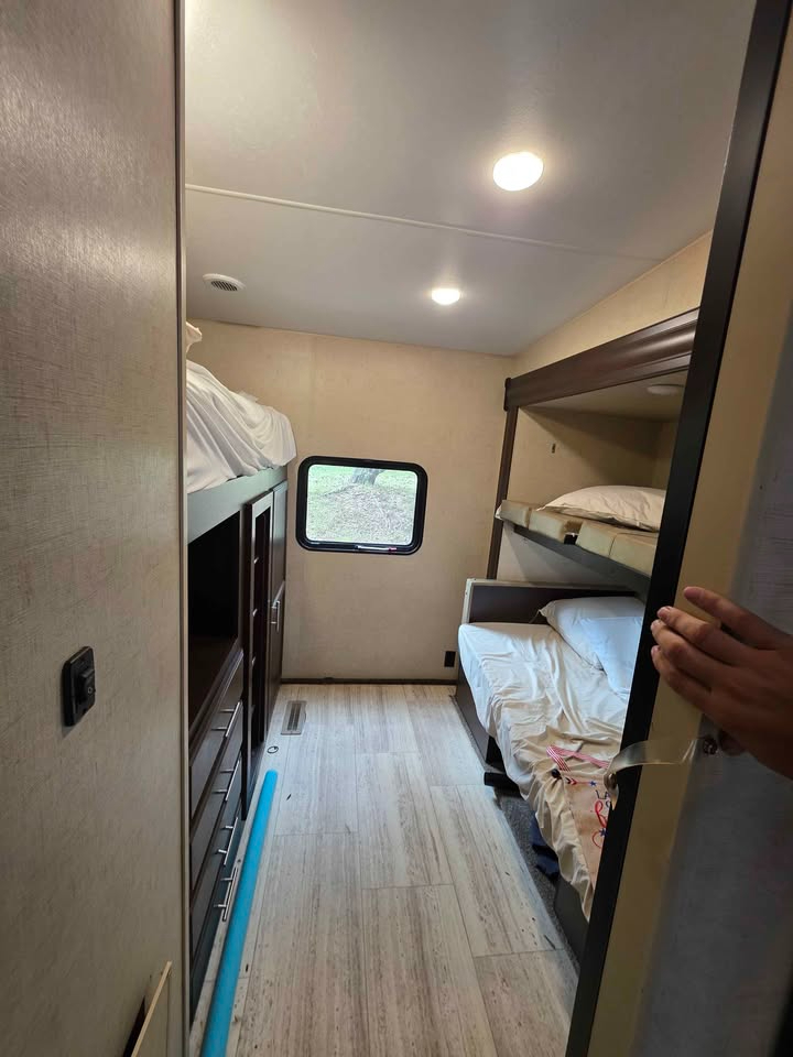 Bill of Sale Only. Some damage to left side. Very spacious 5th Wheel 1 Bedroom Bunk house room sleeps 3 Bathroom 2 slides Electric Awning Outside Kitchen Cold Air GVWR 9200