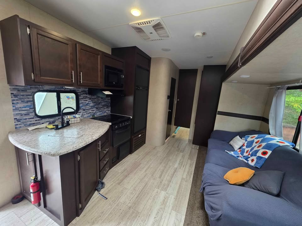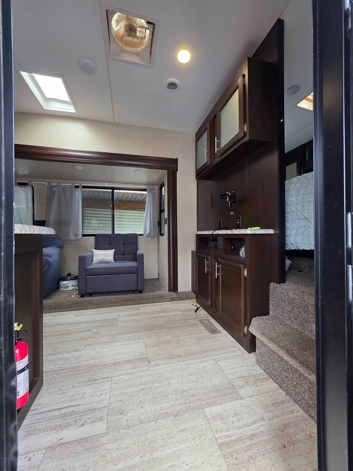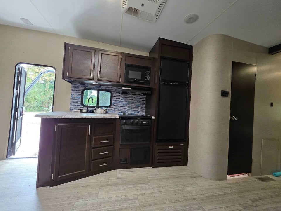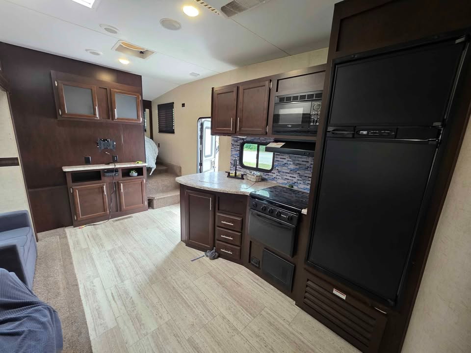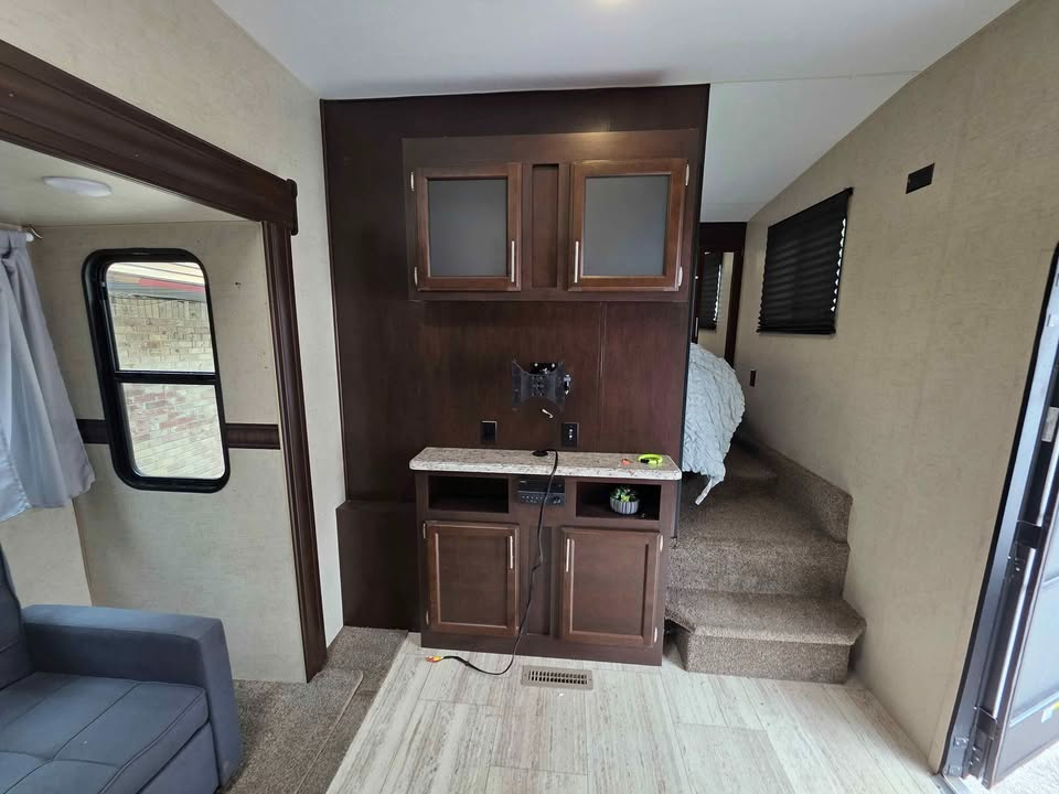 Bill of Sale Only. Some damage to left side. Very spacious 5th Wheel 1 Bedroom Bunk house room sleeps 3 Bathroom 2 slides Electric Awning Outside Kitchen Cold Air GVWR 9200